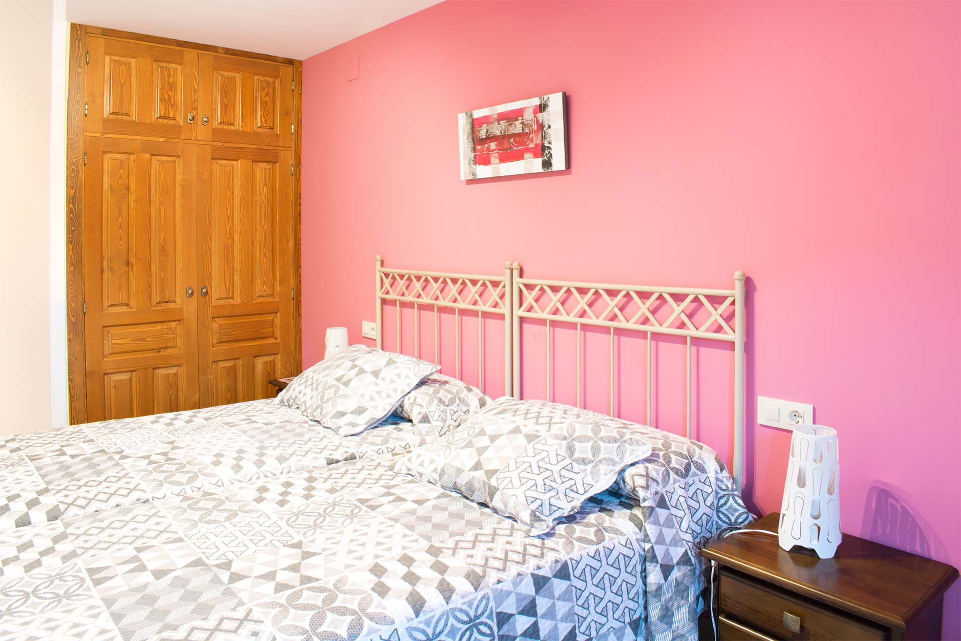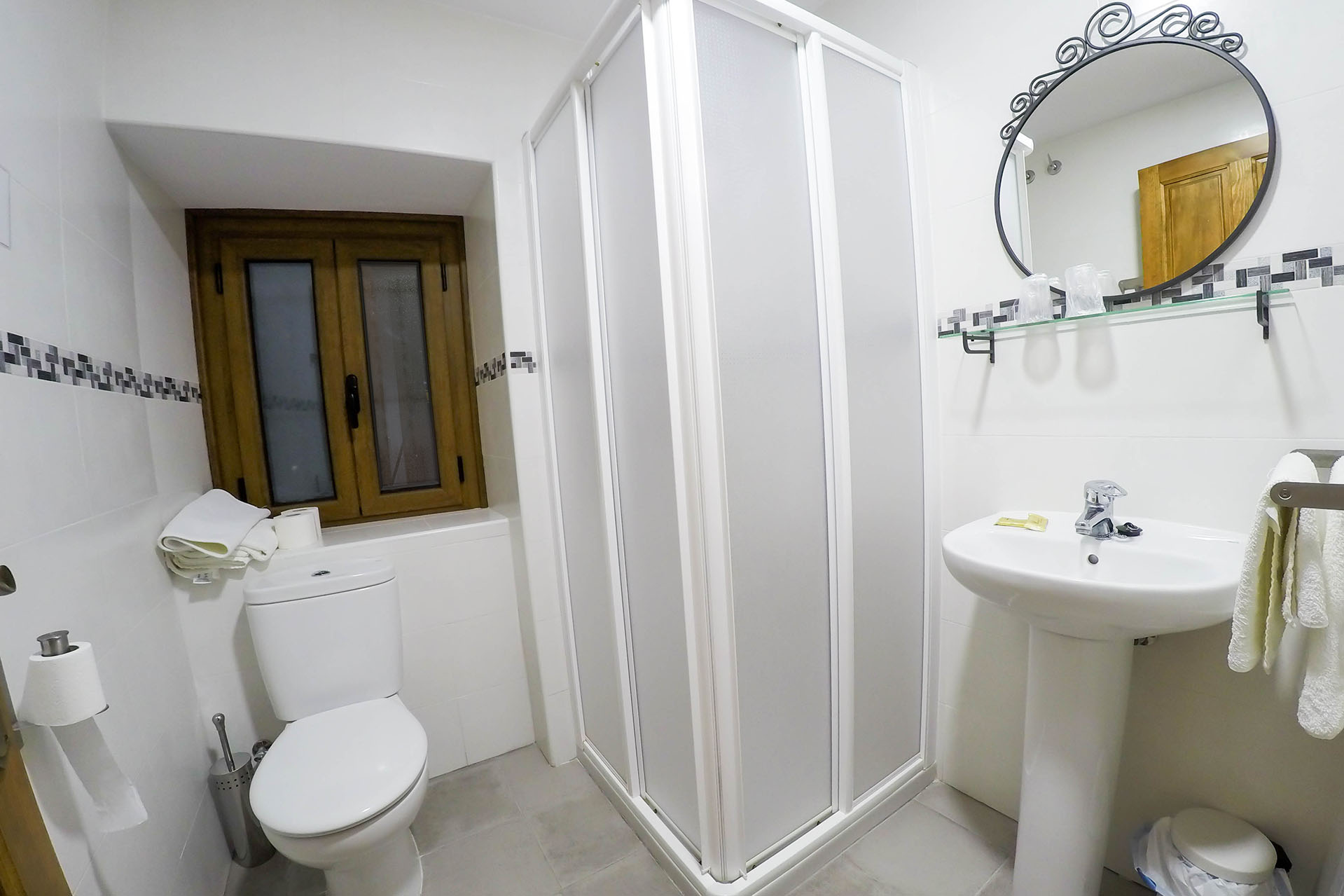 Habitación doble exterior con dos camas individuales, calefacción, TV y Wifi. Cuarto de baño con ducha. Vistas al rio y a la Peña Montañesa.